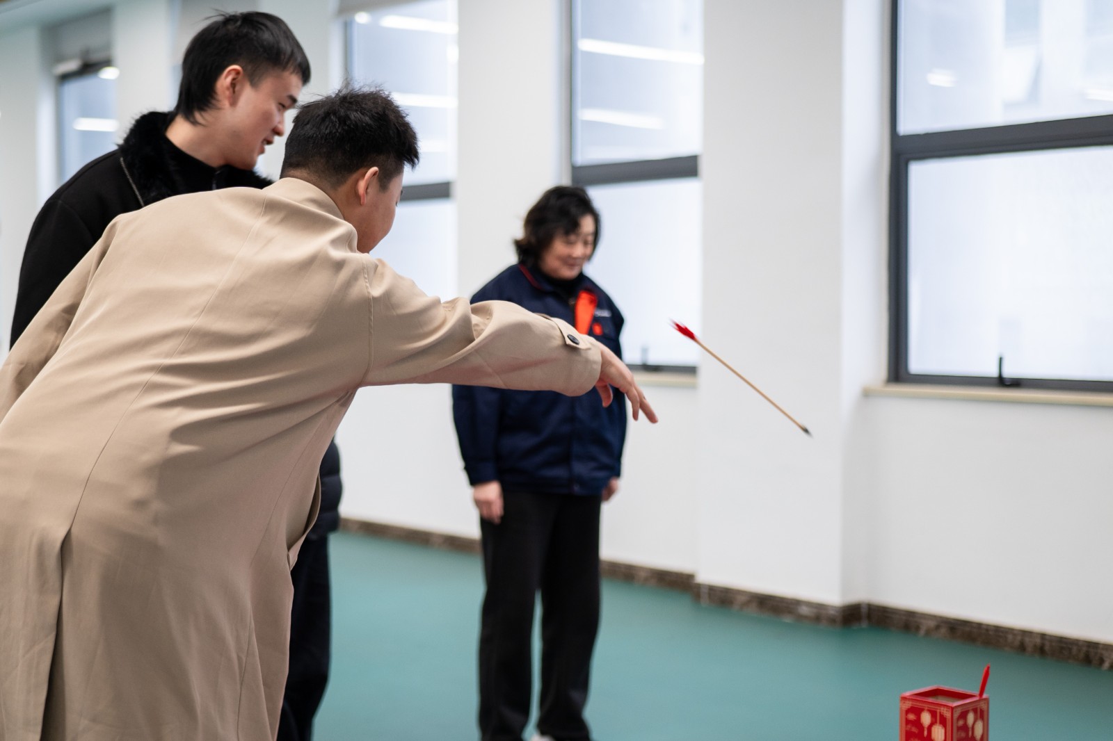 大家屏息凝神、抬手輕擲,箭矢在空中劃出輕快弧線。有小伙伴一擊即中,引來(lái)滿堂喝彩;也有人稍稍偏出,也惹得全場(chǎng)會(huì)心一笑。